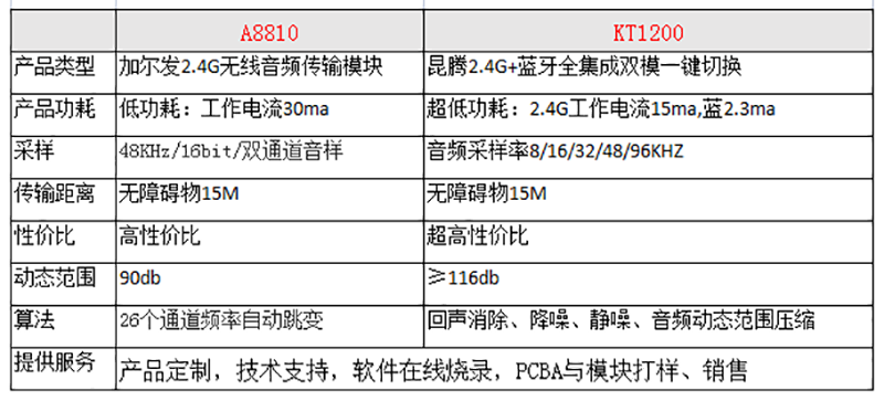 KT1200是一種高度集成的2.4G藍牙雙模無線收發方案。雙模藍牙5.0,兼容藍牙4.2 和V2.1+VDR,支持藍牙Piconet和Scatternet組網協議。可實現無線監聽耳機和無線麥克風等多種應用。KT1200集成2.4G射頻收發系統,芯片集成了USB可實現USB的音頻傳輸。在此,KT1200集成兩路高品質DSP可以支持多種時鐘頻率,可以實現音頻均衡器(EQ)、風聲消除,回聲消除、單雙麥降噪、靜噪、音頻動態范圍壓縮等功能。