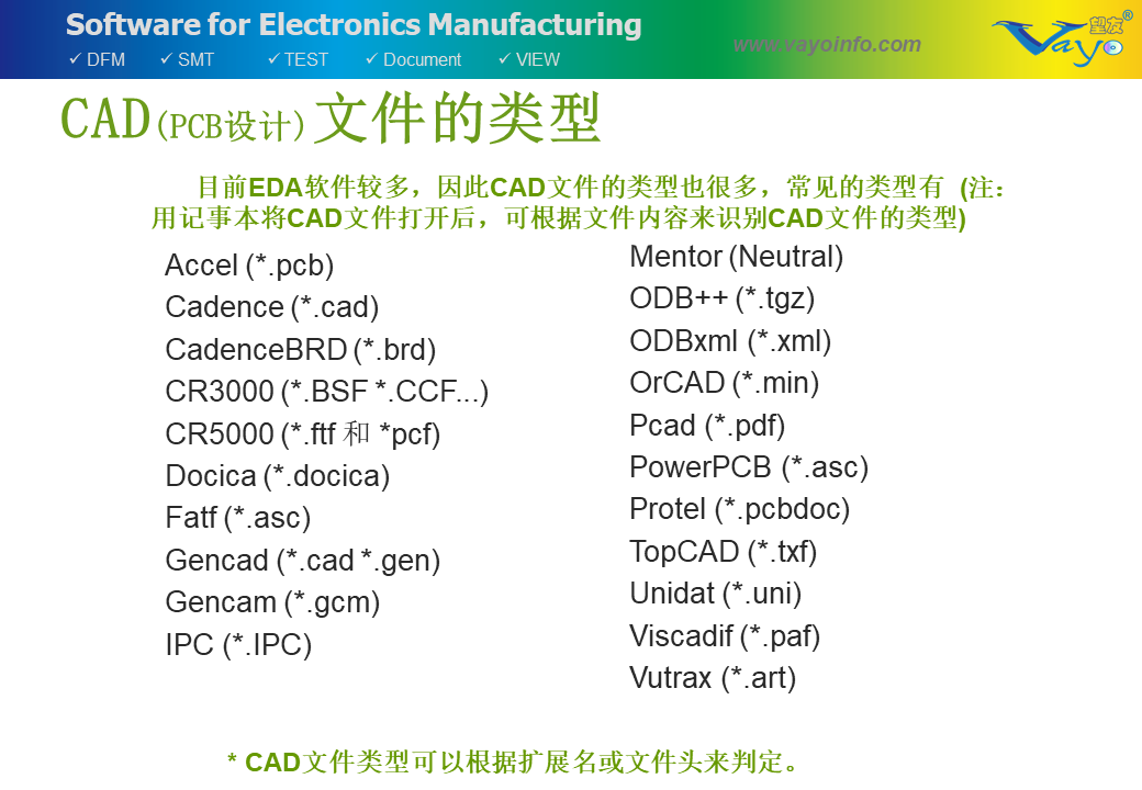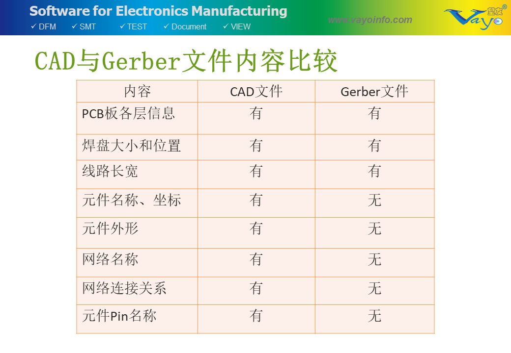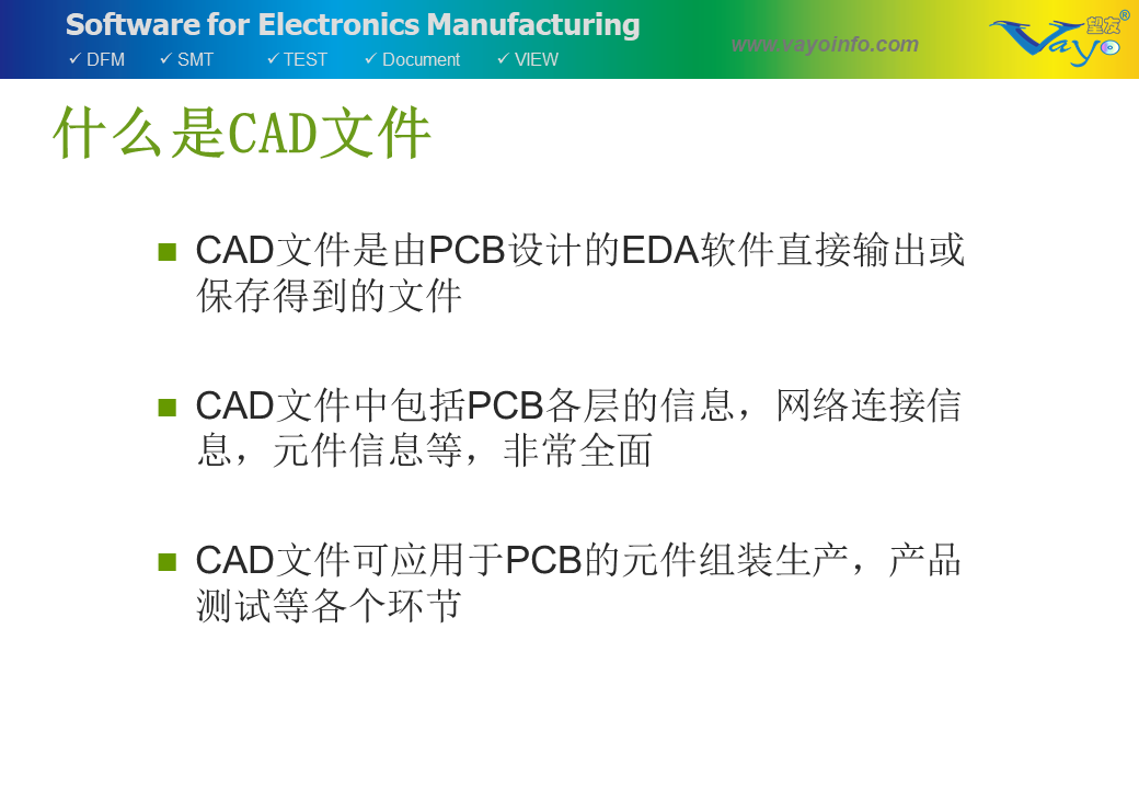 CAD文件是由PCB設(shè)計的EDA軟件直接輸出或保存得到的文件,CAD文件中包括PCB各層的信息、網(wǎng)絡(luò)連接信息、元件信息等,非常全面,一個電路板的全部、所有、一切信息。