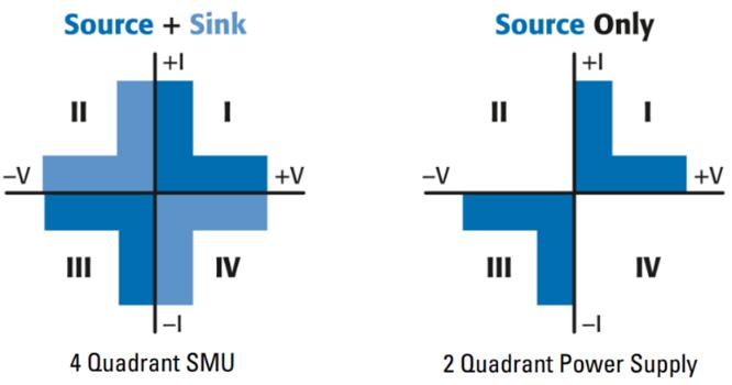 “源表”即指一種可作為四象限的電壓源或電流源提供精確的電壓或電流,同時可同步測量電流值或電壓值的測量儀表。(恒流源時測電壓,恒壓源時測電流)