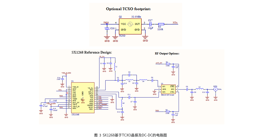 SX1268芯片采用32MHzTCXO晶振來(lái)提供時(shí)鐘,頻率準(zhǔn)確度高;