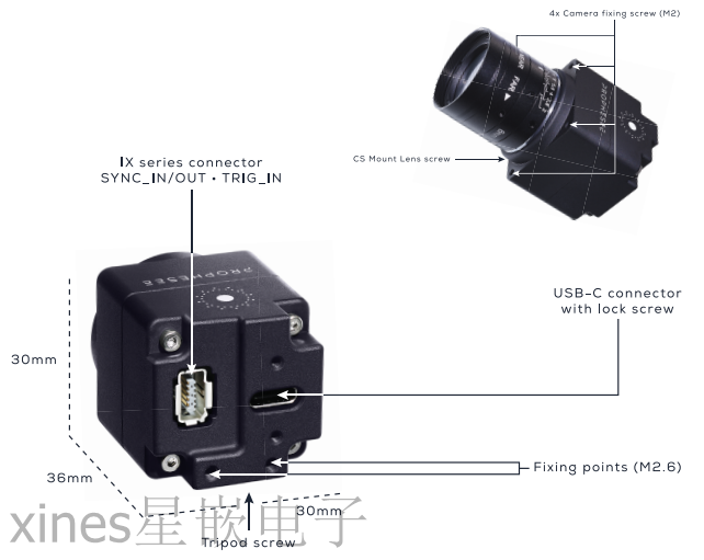 • 易于集成:4x M2 前置+ 2x M2.6 后置固定點+三腳架螺絲