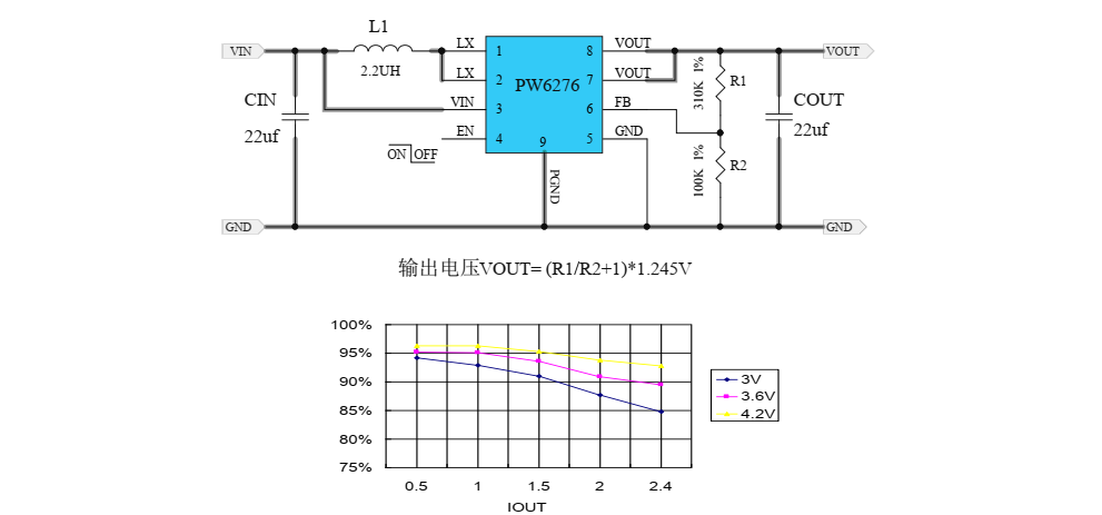 PW6276采用 SOP8-EP 封裝配合較少的外圍原件使其非常適用于便攜式產(chǎn)品。
