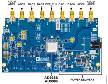 一、衛星數據鏈綜 衛星通信是衛星互聯網的重要應用之一,主要指通過或借助衛星進行數據通信,可廣泛應用于移動用戶、遠程操作、及相關前沿應用領域。衛星通信產業鏈主要涵蓋衛星制造、運載發射與地面設備等基礎設施建設,及其運營服務。 商業航天衛星市場*(主要為低成本近地軌道衛星)快速擴張,現已成為市場發展的驅動力,與之形成對比的是限制多、成本高、海拔高的地球同步軌道(GEO)衛星。隨著這些市場變化的出現,主要的問題之一是需要多少輻射加固。如今,大批量商業航天市場不能承擔成本較高、要求嚴格、耐輻射,并且符合航天標準的“傳統”芯片、元件和設備,并且通常也不需要。 基于1G帶寬的衛星數據鏈是未來6G移動通信的核心技術,以ADI公司AD9988為基礎的射頻收發平臺, 完美解決了 Sub-6G 的通信問題,以 Transceiver 為基礎可以向上擴頻到 X, KA .KU 頻段,以下先講解 KA 頻段衛星通信解決方案。采用 AD9986的接收機和發射機衛星通信系統,整個方案 Sub-6G 模塊可以固定,只需要切換射頻前端就能實現不同頻段的擴頻通信。 該方案推動商業航天衛星產業發展 ● 更低的發射成本 ● 體積更小、重量更輕、價格更加低廉的航天器 ● 對現代IC技術和新功能的需求 ● 對近地軌道任務和更大衛星群的重視 ● 需要縮短產品上市時間 二、FMCJ469-基于AD9988的四路4 GSPS@ 12 bit,四路12 GSPS@16 位4T4R 射頻FMC子卡   2.1 產品詳情 用戶指南介紹了 AD9081-FMCA-EBZ、AD9082-FMCA-EBZ、AD9986-FMCB-EBZ 和 AD9988-FMCB-EBZ 評估板,它們提供操作各種模式和配置下的 AD9081、AD9082、AD9986、AD9988 、AD9207、AD9209 或 AD9177 所需的所有支持電路。還介紹了用于與套件接口的應用軟件。這些評估板連接到 ADI 公司的 ADS9-V2EBZ,以使用 ACE 軟件進行評估。 該評估板還可以與 Xilinx® 或 Intel®的市售現場可編程門陣列 (FPGA) 開發板連接。“AD-FMC-SDCARD 的使用”部分提供了有關如何使用這些平臺來評估 AD9081 或 AD9082 的信息。 ACE 軟件允許用戶在各種模式下設置 MxFE®,以捕獲模數轉換器(ADC) 數據進行分析。DPGDownloaderLite 軟件(包含在 ACE 安裝中)生成矢量,并將其傳輸到數模轉換器 (DAC),然后可以將其發送到頻譜分析儀,進行進一步分析。如需了解更多信息,請參閱 AD9081、AD9082、AD9986、AD9988、AD9207、AD9209 或 AD9177 數據手冊和 UG-1578(套件用戶指南),使用評估板時,必須同時參考用戶指南。 優勢和特點 ● AD9988 的全功能評估板 ● 帶有分析、控制、評估 (ACE) 軟件的 PC 控制軟件。 由 HMC7044 管理套件和 FPGA 時鐘提供板載時鐘。 ● 選擇切換到外部直接時鐘 2.2 AD9988芯片概述 AD9988 是一款高度集成的套件,具有四個 16 位、12 GSPS 最大采樣率、RF 數模轉換器 (DAC) 內核,以及四個 12 位、4 GSPS 速率、RF 模數轉換器 (ADC) 內核。該套件通過 4T4R 配置,支持 4 個變送器通道和 4 個接收器通道。該產品非常適合四天線 TDD 變送器應用,在該應用中,接收器路徑可以在接收器和觀察模式之間共享。可以配置和切換 GPIO 引腳,以支持不同的用戶模式,同時保持相位一致性。在 4T4R 配置中,支持的最大射頻通道帶寬為 1.2 GHz,采樣分辨率為 16 位。AD9988具有一個 16 通道 24.75 Gbps JESD204C 或 15.5 Gbps JESD204B 串行數據端口,其中每個變送/接收鏈路最多可支持八個通道,還有一個片內時鐘乘法器,并具有針對直接面向 RF 射頻應用的多頻帶的數字信號處理能力。