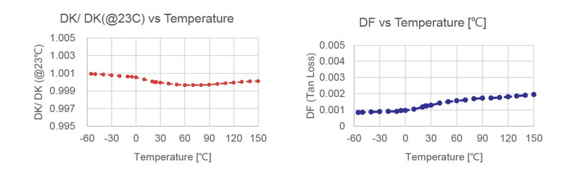 TSM-DS3作為一款含有玻璃纖維布+陶瓷填料的低損耗PTFE材料,具有極佳的尺寸穩定行,搭配fastRise使用,可以制作高多層線路板,并且在多次壓合后仍能保證良好的尺寸穩定性。此外,TSM-DS3具有非常低的Dk溫漂系數以及優異的環境耐受性,因而在毫米波頻段的電氣性能更加穩定。