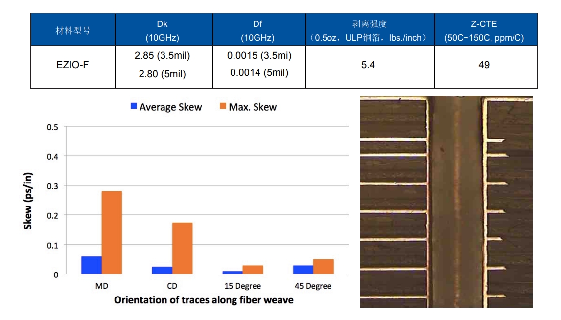 隨著高速通信傳輸速率的不斷增加,傳統PCB背板材料所面臨的挑戰越來越大。針對這一現實需求,TACONIC開發出了兼顧低損耗、可加工性以及可靠性的PTFE高速背板材料EZIO-F, 其搭配特定型號的fastRise使用,最高可以制作層數高達56層的高速背板。經測試,EZIO-F搭配fastRise制作的高速背板產品的線路插入損耗比PPO樹脂體系材料低15%~25%。