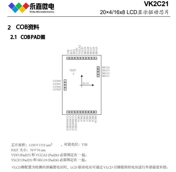 VK2C21A 2.4~5.5V 20seg*4com 16*8 偏置電壓1/3 1/4 I2C通訊接口 SOP28;DICE/DIE裸片(綁定COB);COG(綁定玻璃) 高抗干擾/抗噪/低功耗