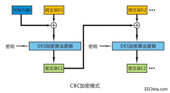 (2)將D1與初始向量I異或后的結果進行DES加密運算得到第一組密文C1。