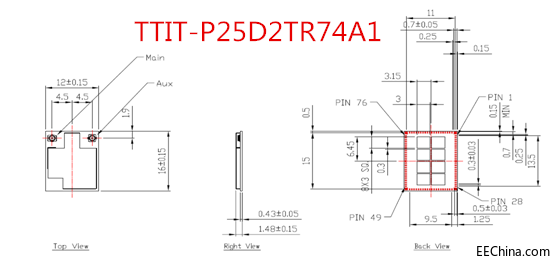 型號一:TTIT-S25D2TR74A3,采用QCA6174A-3方案,通信接口SDIO3.0@WiFi、Uart/PCM@BT;