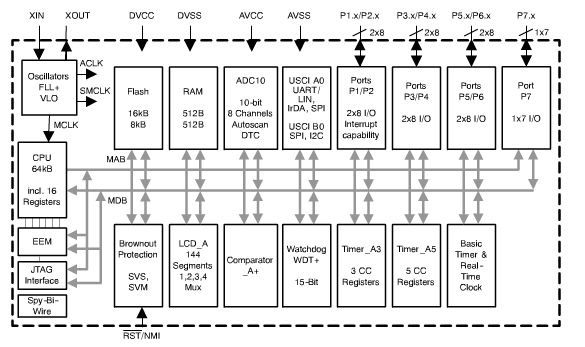 內(nèi)部非常低的功率,低頻振蕩器 16位RISC體系結(jié)構(gòu),125 - ns指令周期時間16位定時器一個和三個捕獲/比較寄存器 16位定時器一個有五個捕獲/比較寄存器 兩個通用串行通信接口(USCIs) USCI_A0 增強(qiáng)的UART支持汽車波特率檢測 IrDA編碼器和譯碼器 同步SPI USCI_B0 I2C 同步SPI 電源電壓與可編程主管/監(jiān)控水平檢測 集成LCD驅(qū)動控制與對比144段 基本定時器與實時時鐘功能 燈火探測器 芯片上的比較器為模擬信號比較函數(shù)或