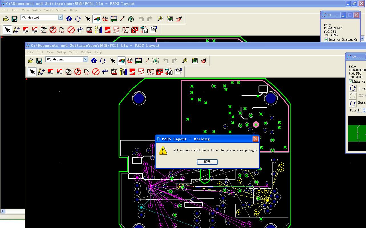 在電源層先點了plane area 畫了一個大的外框,然后又點了auto plane separate 開始分割其他的電源,在分割畫框線時,彈出上述問題的