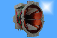 偏轉線圈是電視機顯像管的附屬部件,它包括行偏轉線圈和場偏轉線圈,均套在顯像管的管頸(錐體部位)上,用來控制電子束的掃描運動方向。行偏轉線圈控制電子束作水平方向掃描,場偏轉線圈控制電子束作垂直方向掃描。右圖是偏轉線圈的外形及結構。