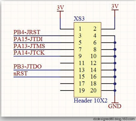nRST是接芯片的復(fù)位腳,板上的實(shí)物是20針的JTAG接口