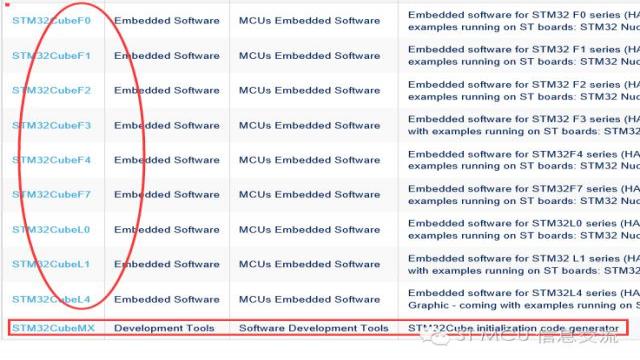 搜索 STM32CUBE即可看到STM32CubeMX和各個STM32系列的固件包。