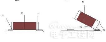 當貼片時,由于焊墊的不平或焊膏的滑動,造成片感偏移了θ角。由于焊墊熔融時產生的潤濕力,可能形成以上三種情況,其中自行歸正為主,但有時會出現拉的更斜,或者單點拉正的情況,片感被拉到一個焊盤上,甚至被拉起來,斜立或直立(立碑現象)。目前帶θ角偏移視覺檢測的貼片機可減少此類失效的發生
