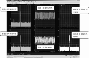 測試結(jié)果(見圖1)表明,利用Agilent 89601A+81204A 可完成對兩路相參調(diào)制信號時間差值參數(shù)的測試。相關(guān)函數(shù)峰值的數(shù)值為兩路信號間的時間差。Agilent 89601A 矢量分析軟件可同時顯示兩路獨立信號的頻譜、時域和相關(guān)運算等參數(shù)。提供對多路信號的完成測試能力。