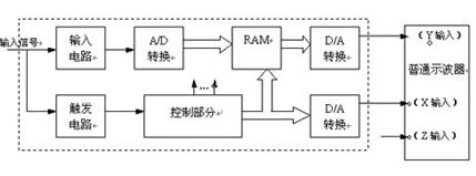 設計并制作一臺用普通示波器顯示被測波形的簡易數字存儲示波器,示意圖如下:
