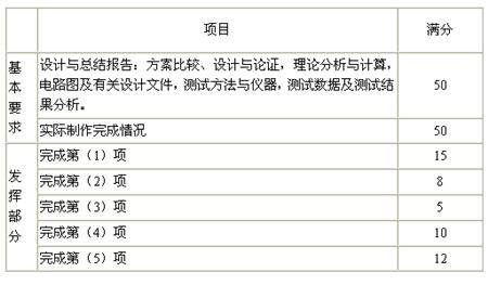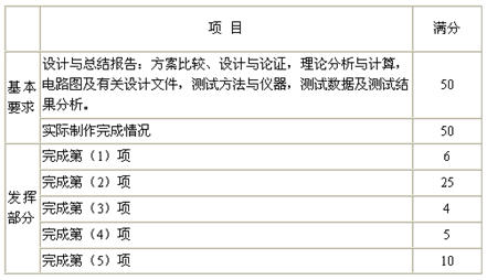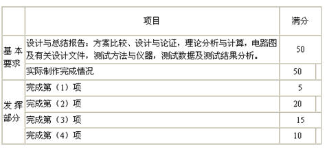 2. 效率計算中的放大器總功耗是指功率放大器部分的總電流乘以供電電壓(+5V),不包括“基本要求”中第(2)、(3)項涉及的電路部分功耗。制作時要注意便于效率測試。