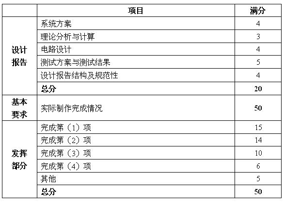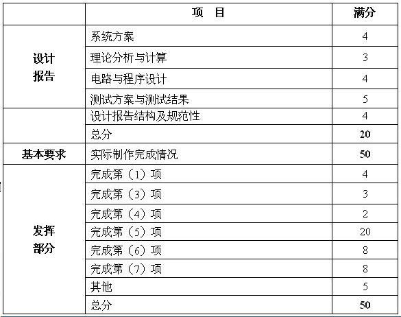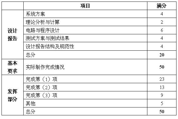 3.設計報告正文應包括系統總體框圖、核心電路原理圖和主要的測試結果。完整的電路原理圖、重要的源程序和完整的測試結果可用附件給出。