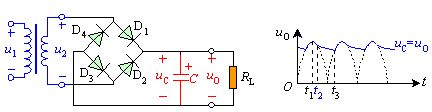 電容濾波一般負(fù)載電流較小,可以滿足td較大的條件,所以輸出電壓波形的放電段比較平緩,紋波較小,輸出脈動系數(shù)S小,輸出平均電壓UO(AV)大,具有較好的濾波特性。