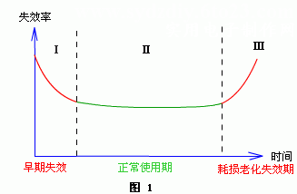要保證試制的電子裝置能夠長期穩定地通電工作,并且經得起應用環境和其它可能因素的考驗,對電子元器件的篩選是必不可少的一道工序。所謂篩選,就是對電子元器件施加一種應力或多種應力試驗,暴露元器件的固有缺陷而不破壞它的完整性。篩選的理論是:如果試驗及應力等級選擇適當,劣質品會失效,而優良品則會通過。人們在長期的生產實踐中發現新制造出來的電子元器件,在剛投入使用的時候,一般失效率較高,叫做早期失效,經過早期失效后,電子元器件便進入了正常的使用期階段,一般來說,在這一階段中,電子元器件的失效率會大大降低。過了正常使用階段,電子元器件便進入了耗損老化期階段,那將意味著壽終正寢。這個規律,恰似一條浴盆曲線,人們稱它為電子元器件的效能曲線,如圖1所示。