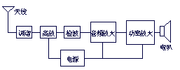 方框圖是一種用方框和連線來(lái)表示電路工作原理和構(gòu)成概況的電路圖。從根本上說(shuō),這也是一 種原理圖,不過(guò)在這種圖紙中,除了方框和連線,幾乎就沒有別的符號(hào)了。它和上面的原理圖主要的區(qū)別就在于原理圖上詳細(xì)地繪制了電路的全部的元器件和它們的 連接方式,而方框圖只是簡(jiǎn)單地將電路按照功能劃分為幾個(gè)部分,將每一個(gè)部分描繪成一個(gè)方框,在方框中加上簡(jiǎn)單的文字說(shuō)明,在方框間用連線(有時(shí)用帶箭頭的 連線)說(shuō)明各個(gè)方框之間的關(guān)系。所以方框圖只能用來(lái)體現(xiàn)電路的大致工作原理,而原理圖除了詳細(xì)地表明電路的工作原理之外,還可以用來(lái)作為采集元件、制作電 路的依據(jù)。下圖所示的就是上述收音機(jī)電路的方框圖