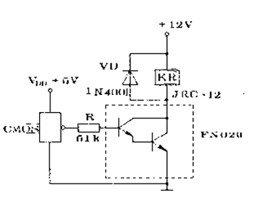 利用CMOS電路經過達林頓管驅動高靈敏度繼電器的電路,如圖1所示。虛線框內是小功率NPN達林頓管FN020。