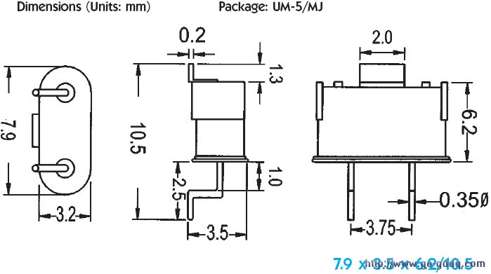 3、UM-5/MJ 10 - 200 MHz 7.9 x 3.5 x 6.2/10.5