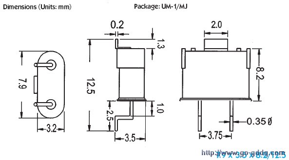2、UM-1/MJ 1 - 200 MHz 7.9 x 3.5 x 8.2/12.5