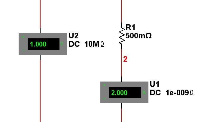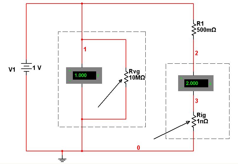 大家可以從圖中看到:直流電壓表的內阻是10兆歐姆,直流電流表的內阻是1納歐姆。呵呵
