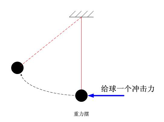 我們可以給重力球一個“沖擊力”,讓它獲得一定的“初始動能”,這樣球就可以擺動起來了。呵呵。