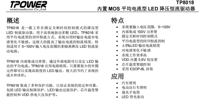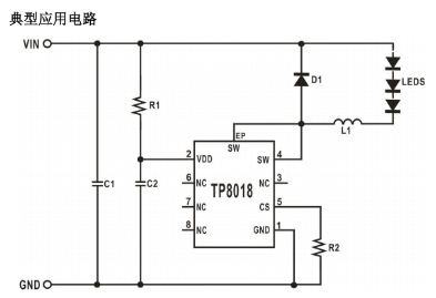 天源TP8018 內置MOS 1.8A 平均電流型 LED 降壓恒流驅動