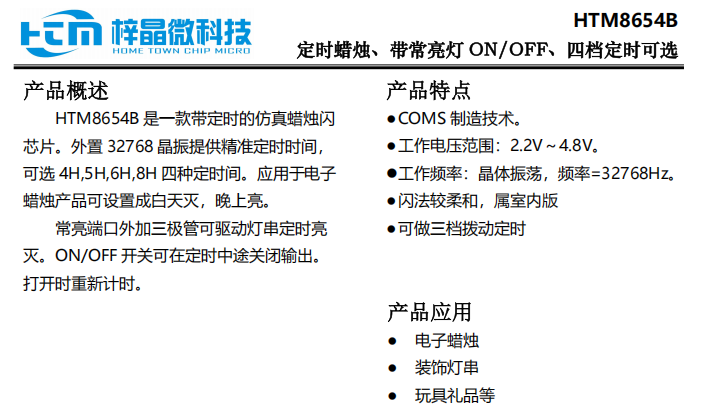 HTM8654B 定時蠟燭、帶常亮燈 ON/OFF、四檔定時可選