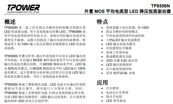 天源TP8556汽車LED恒流IC,高功率 上電120W,穩定工作在75W左右車燈芯片