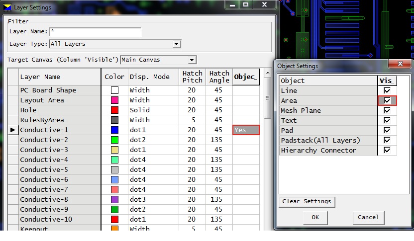 如上圖片,layer settings 的display columns,將objects setting 勾上后,然后在你要的層上把Area 不選就不顯示了