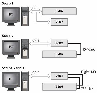 注釋 – 全部時間建立在包括每條通道一項源和測量功能的基礎(chǔ)上。如果不含源或測量,開關(guān)時間會更快。 在此應(yīng)用示例中,計算機通過GPIB總線或TSP-Link發(fā)送指令控制兩臺儀器。被測器件(DUT)為10顆LED。每顆LED由2602 ...