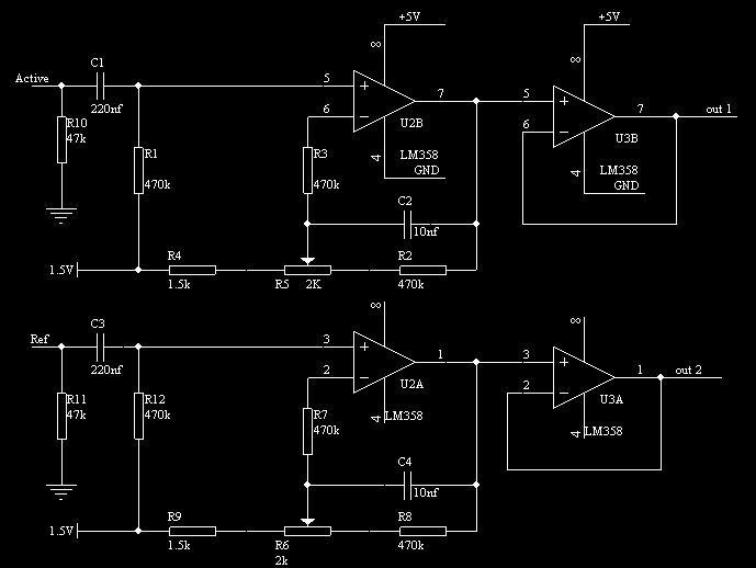 大家?guī)兔聪逻@個(gè)電路圖 ,輸入是紅外傳感熱釋電探測(cè)器的參考和測(cè)量通道,輸出直接接AD轉(zhuǎn)換器,這圖看不懂,求指導(dǎo)。。先謝過(guò)