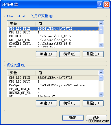 聽其他人說,對於環境變數還有一種更簡潔的操作方法,不過沒有試過,感興趣的可以試下 下面的系統變量其實可以刪除,裝不同的allegro時 ,需要指定自定義證書變量,這時候下面那個CDS_LIC_ONLY也需要刪除 |