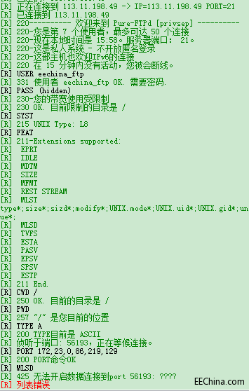 今天登陸準備下載EE v7.9.5,結果FTP總是登不上去顯示如下圖。用的登錄信息是:IP:113.11.198.49 用戶名:eechina_ftp 密碼:m.4huy16.com求解決方案。