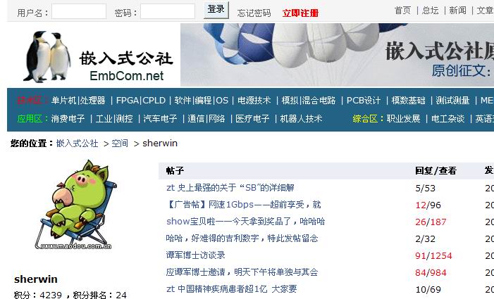嗯,那就很奇怪了,呵呵。但是我很清楚的記得,之前的一段時間是沒有這個問題的,至少上個月是肯定正常的。 補充一下:我現在用Firefox來看,結果一樣。看來這個問題與瀏覽器無關,應該是公社網站自身的問題。 |