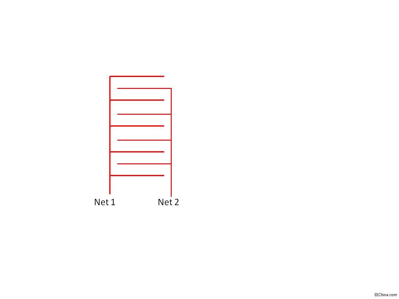 最近看到有個(gè)layout在做的時(shí)候兩個(gè)信號(hào)線之間都走成像梳子一樣的線,每個(gè)梳子的小腳都交叉在一起但并不連接在一起。這是問什么? 這個(gè)不是開關(guān)按鈕設(shè)計(jì),布線在內(nèi)層。另外增加電容的也太小了啊,可以忽略啊。