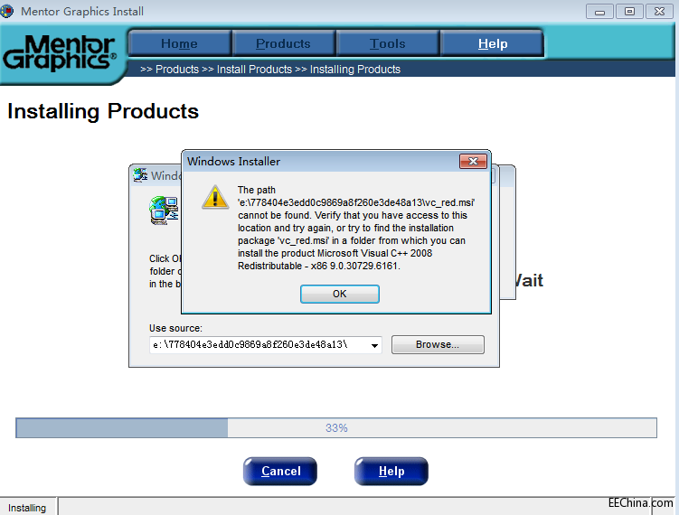 大家好,安裝 Mentor EE 7.9.3 和 7.9.5 都有下面的提示,大家遇到過嗎? 點取消后會繼續安裝.