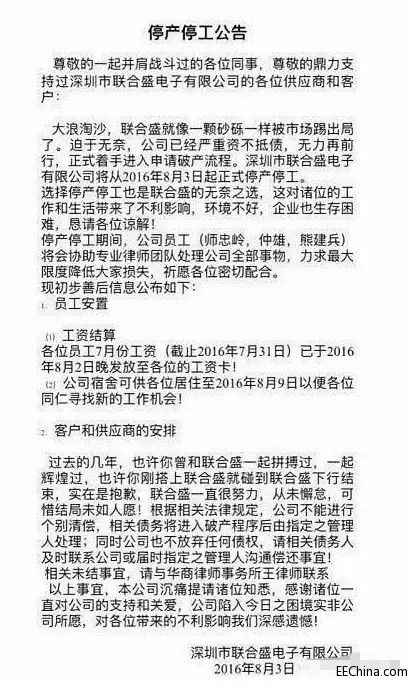 深圳市聯合盛電子有限公司發布停產停工公告,引起社會廣泛關注。進入2016年以來,珠三角電子制造業的“倒閉”、“欠薪”、“跑路”等新聞屢見不鮮,并出現多米諾骨牌效應。 互聯網+沖擊下的中國制造業討論中國制 ...