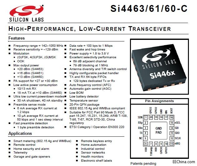 有用到這顆射頻芯片嗎?型號:SI4463-C2A-GMR