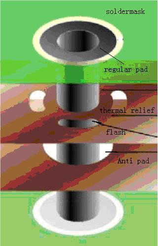 這個問題很糾結,allegro怎么定義的我不是很清楚,這里的flash是什么含義我也不清楚,我覺得應該是定義的一個形狀。 這個plating 過孔,比如要和地層連接,那么如果是全部連接的話,那么內層做成實心的對焊接不太好,所以就做成了花盤形狀的。如果是Circle、Square的話,那么可能在連接的時候就顯示成實心了。 |