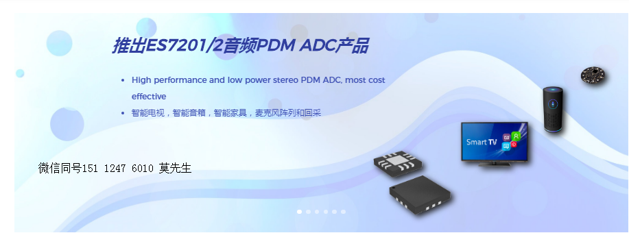 蘇州順芯半導體有限公司 Everest Semiconductor 請來電或電郵申請樣品、咨詢技術支持151 1247 6010 莫先生(包括代碼驅動、版圖布線指引等) 順芯推出ES7201_ES7202音頻PDM信號ADC