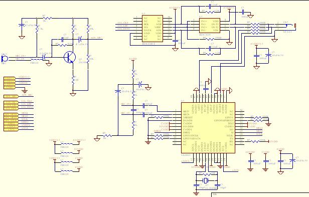 那個三極管放大電路是飛船大俠設(shè)計的,當(dāng)時給我們時是有電源的,俺畫圖是給忘丟掉了,現(xiàn)在給補(bǔ)上.還是人多眼睛多,腦袋多呀![]() |