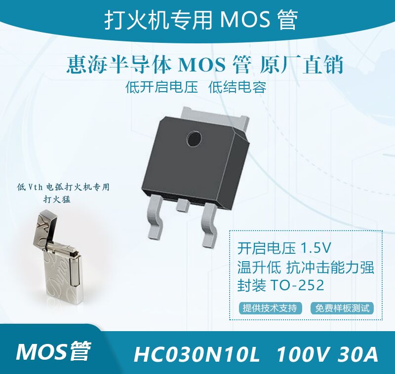 今天分享一款專門為應用于電弧打火機市場設計開發的一款MOS管,低開啟電壓 低內阻,特別適合應用于電弧打火機,其特點是打火猛、溫度低、打火時間長、火花四射。 型號:HC030N10L參數:100V30A ,類型:N溝道MOS場效 ...