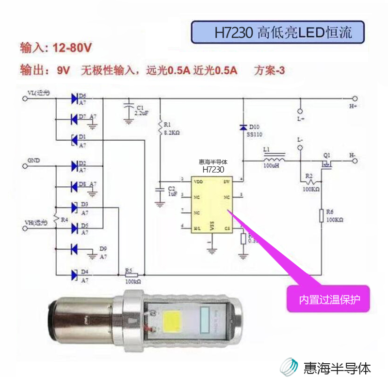 80V85V100V低成本同步整流電動車燈遠近光LED降壓恒流IC方案H7230 車燈遠近光切換的原理:遠近光燈的切換原理,首先要分這個遠近光燈的類型,其有兩種情況:一是遠近光燈一體(也就是遠近光燈被集合在一個模組中) ...