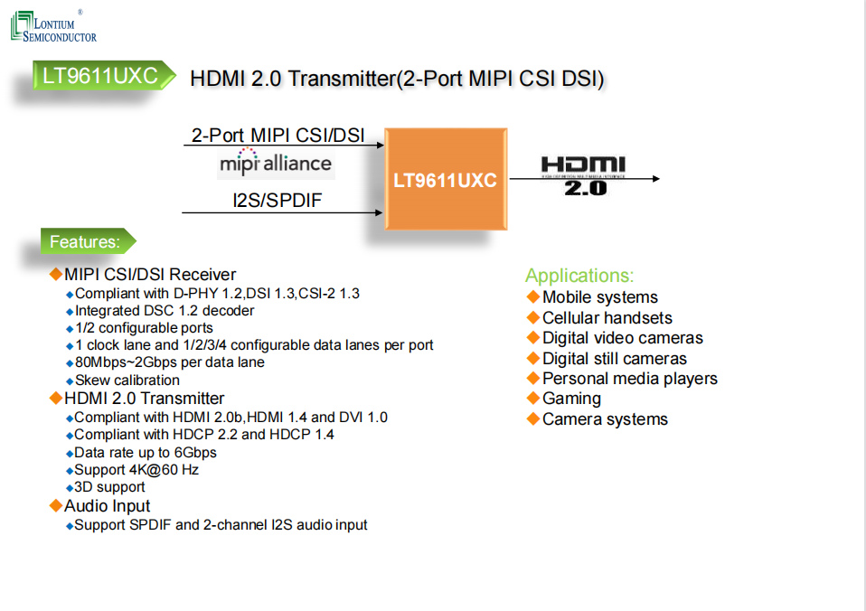 1.說明LT6911UXC是一款用于VR,智能電話,顯示應用的高性能HDMI2.0到MIPI DSI / CSI轉換器。HDMI2.0輸入支持高達6Gbps的數據速率,從而為4k @ 60Hz視頻提供足夠的帶寬。還支持HDCP2.2進行數據解密。對于MIPI DSI / C ...