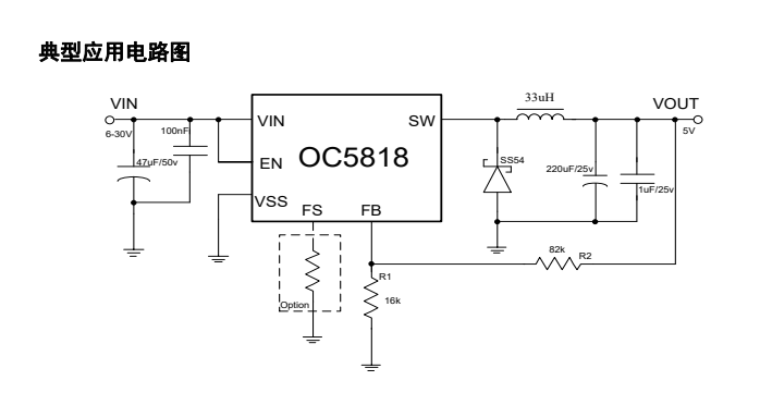 概述OC5818是一款內置功率MOSFET 的單片降壓型開關模式轉換器。OC5818 在6-30V寬輸入電源范圍內實現2.5A 最大 輸出電流,并且具有出色的線電壓和負載 調整率。 OC5818采用PWM電流模工作模式,環路 易于穩定 ...